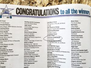 Here is a smattering of awards that are cherished because they were voted on by the community. They Include awards like, "Local Elected Official," (and variations of "Elected Official," and "Local Elected Official - Male"), "Favorite Civic Leader" and "Favorite Local Businessperson."